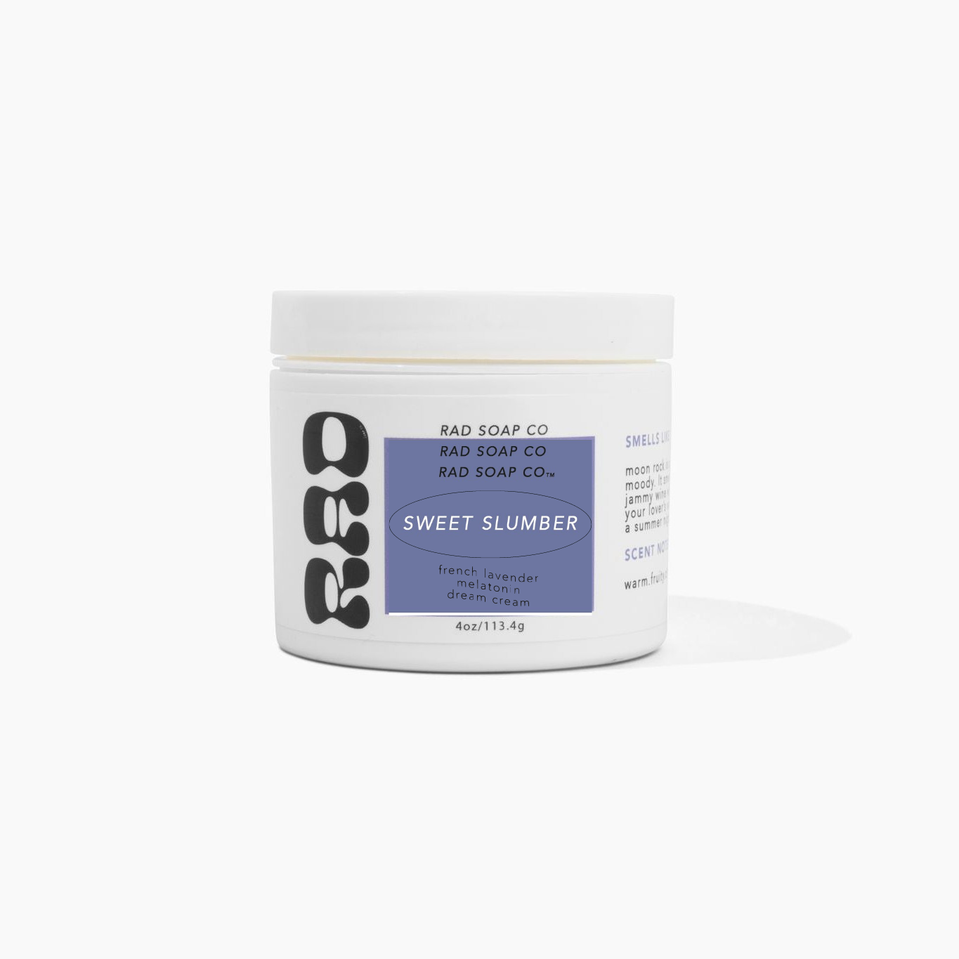 Rad body cream with Essential Oil of French Lavender, Chamomile extraction and plant-based Melatonin extraction.